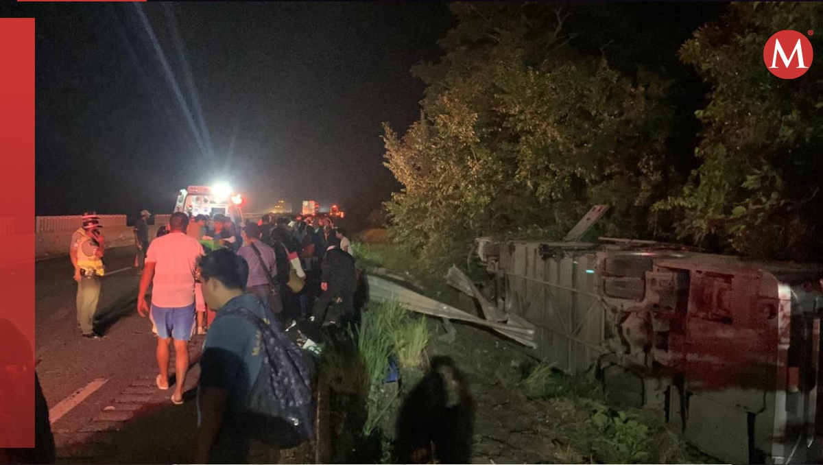 Volcadura de autobús turístico en Vega de Alatorre, Veracruz, dejando 44 heridos