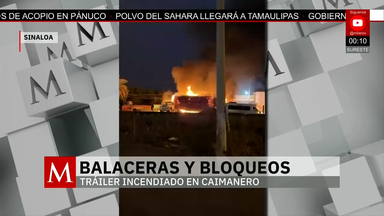Balaceras y bloqueos con tráileres incendiados desatan caos en Sinaloa. Comercios cerraron por seguridad y autoridades vigilan la zona ante los daños. -