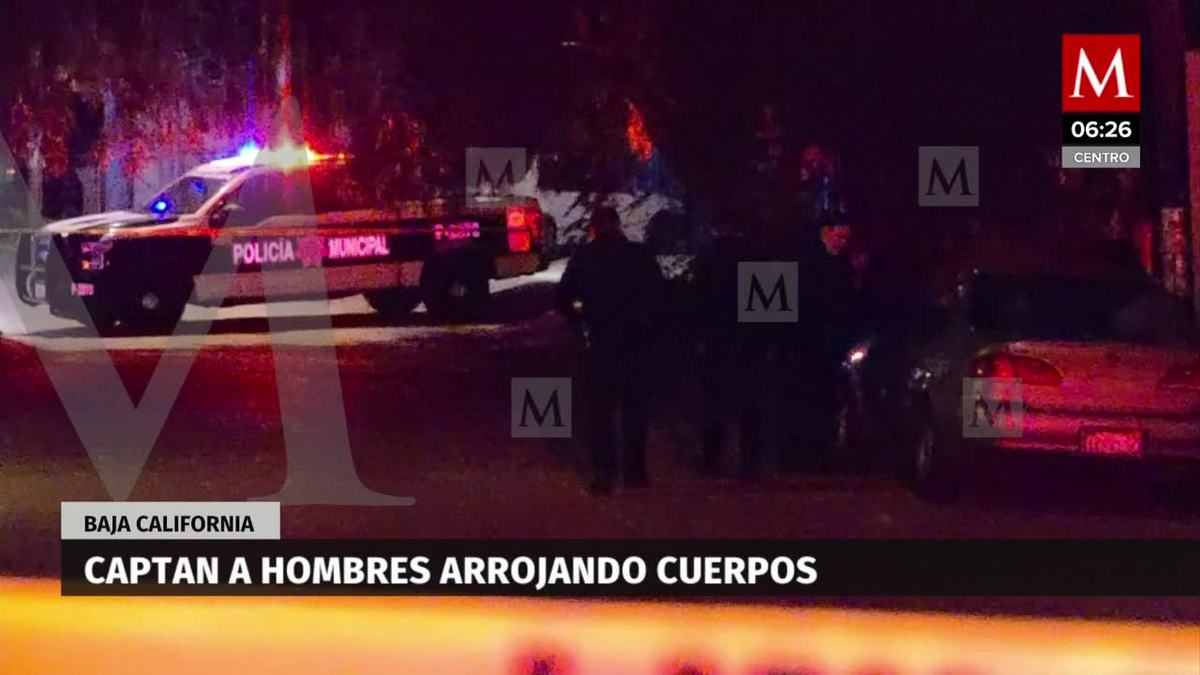 En Baja California una cámara de video capto el momento en el que los tripulantes de un auto arrojan los cuerpos presuntamente de dos mujeres en la colonia Anexa Durango. -