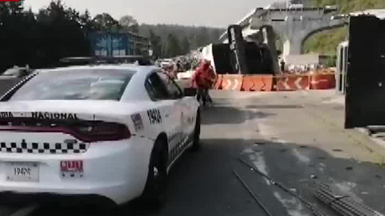 Muere hombre tras volcadura de grúa en la carretera México-Toluca