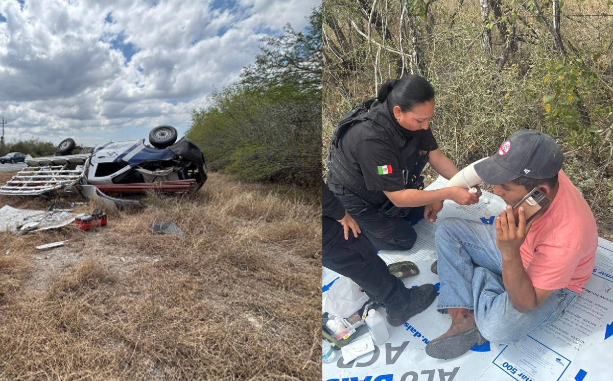 Vuelca auto tras derrapar sobre la carretera Victoria-Matamoros; deja una persona lesionada