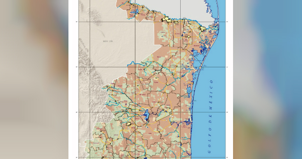 Este mapa prácticamente mostrará la distribución y estructura generalizadas del territorio tamaulipeco, ya sea por tipo de propiedad, social, privada y pública.