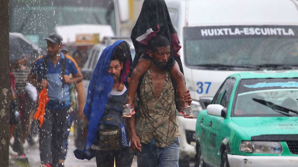 Caravana migrante cruza garita migratoria de Huixtla, Chiapas