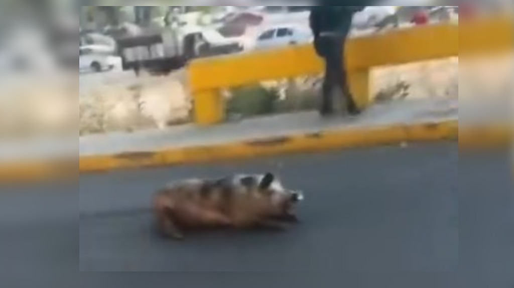 En el video compartido por el periodista Carlos Jiménez, se puede observar que los cerdos cayeron sobre la cinta asfáltica. -