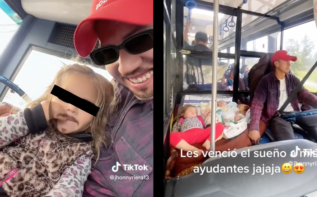 En TikTok se hizo viral la historia de un conductor de transporte público que se llevó a sus pequeños hijos a trabajar con él. -