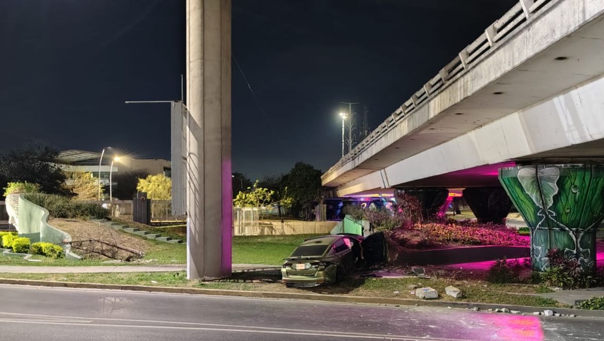 Conductor muere tras chocar contra estructura de puente peatonal en Apodaca, NL