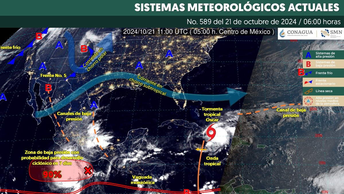El posible ciclón provocará lluvias intensas en la región, mientras una tormenta tropical avanza a costas mexicanas en el Pacífico.