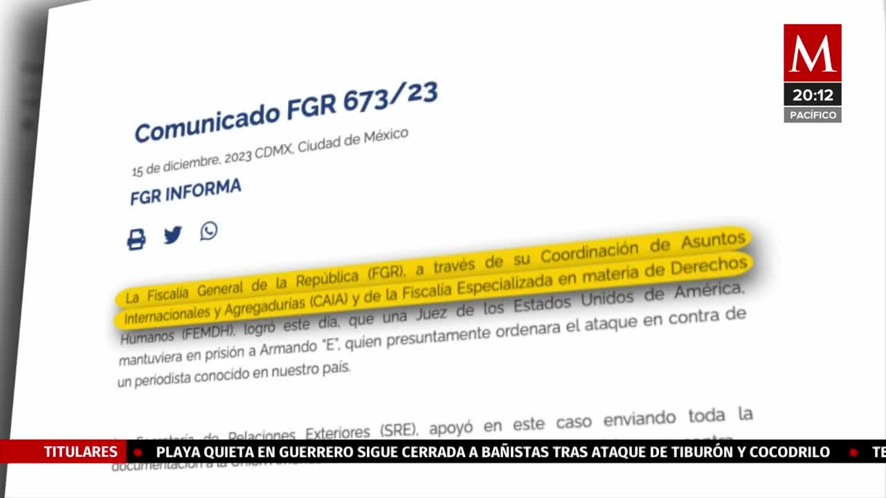 La solicitud del gobierno de México es por el presunto delito de asociación delictuosa y no por el atentado que sufrió el periodista. -