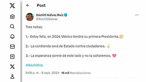 Xóchitl Gálvez lanza mensaje tras darse a conocer que Sheinbaum ganó la encuesta de Morena