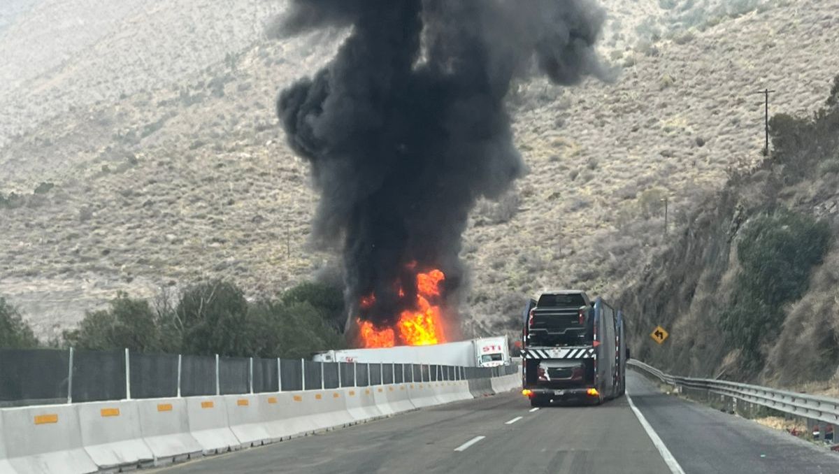 Cierran carretera 57 en Los Chorros por choque múltiple e incendio de tráileres