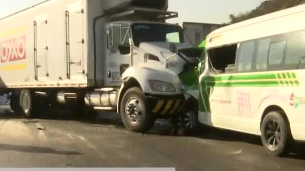 El operador de una combi circulaba en sentido contrario en la autopista, por lo que se impactó con un camión. -