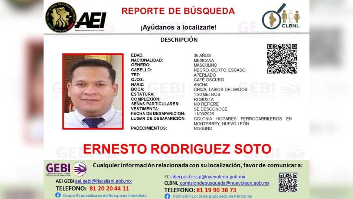 Piden ayuda para buscar a hombre de 36 años desaparecido en Monterrey