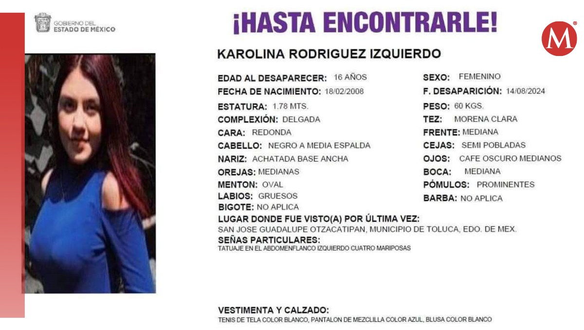 La familia de la joven de 16 años piden a la población que ayuden a compartir su ficha de búsqueda para que puedan encontrarla. -