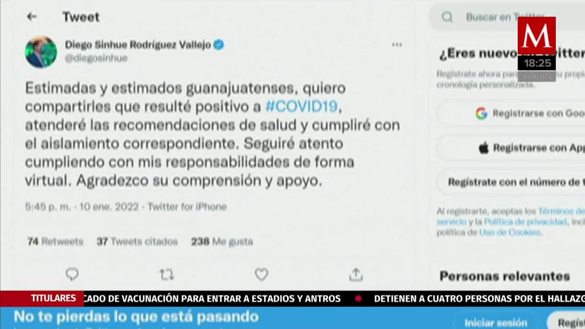 Diego Sinhue gobernador de Guanajuato anuncia a través de Twitter que da positivo Covid-19 y comentó que atenderá las recomendaciones de salud. -