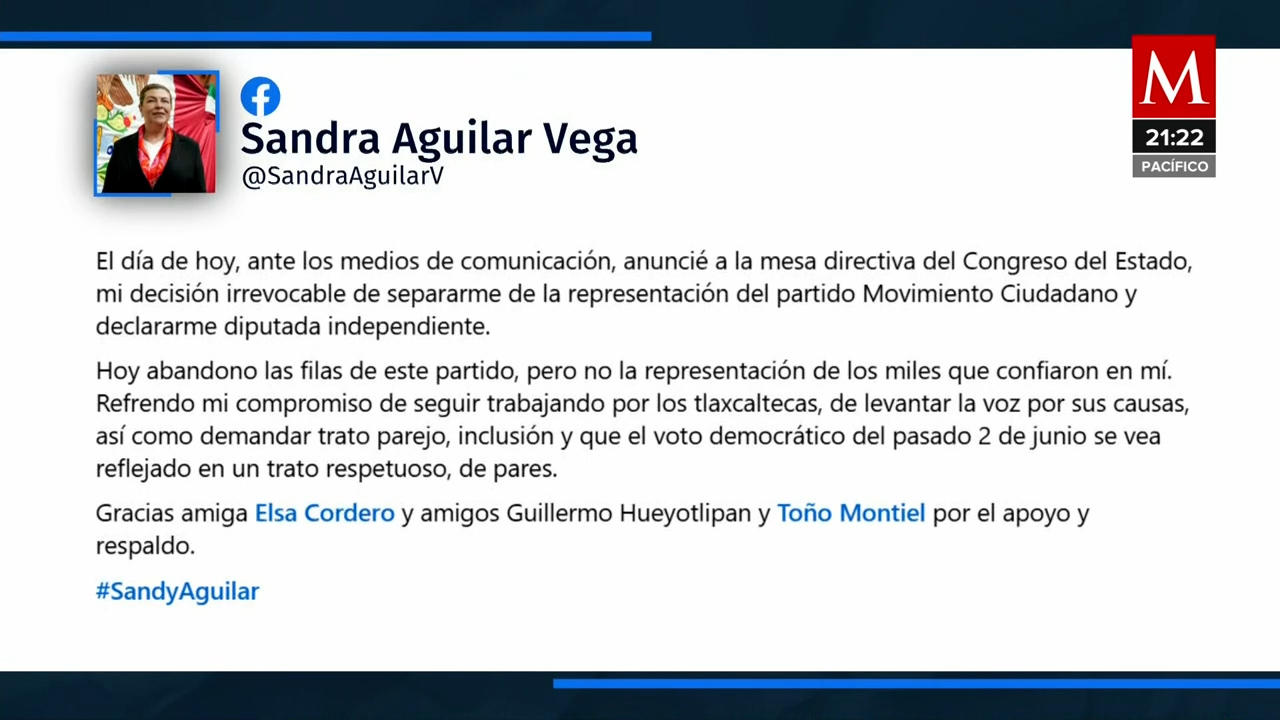 Una diputada local de Tlaxcala de Movimiento Ciudadano anuncia su desvinculación y se une al PRI, con Alejandro Moreno dándole la bienvenida pocas horas después. -