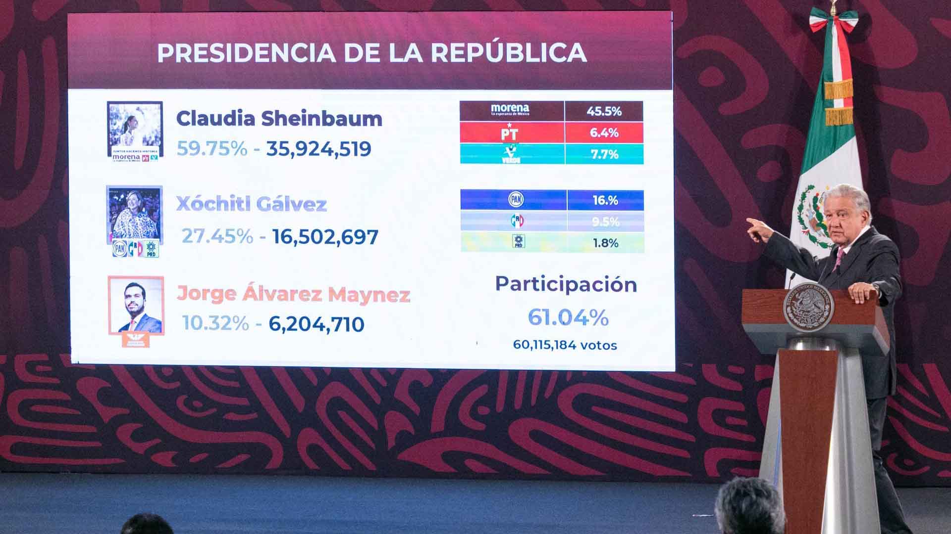 AMLO presume que Sheinbaum obtuvo 36 millones de votos el día de la elecciones