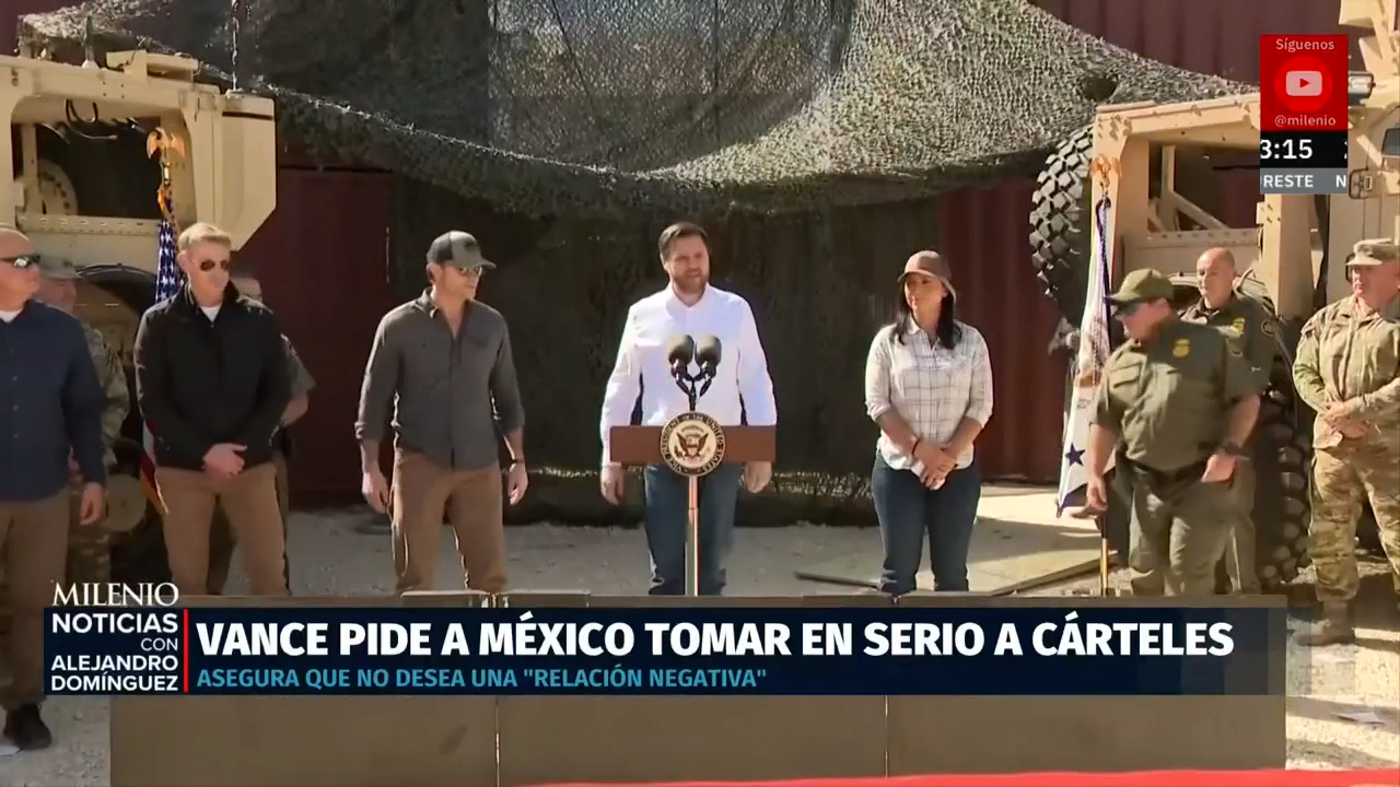 El vicepresidente de EU, J. D. Vance, encabezó una supervisión en helicóptero de la frontera sur en Texas, destacando la colaboración con México para enfrentar el tráfico de fentanilo y los cárteles. -