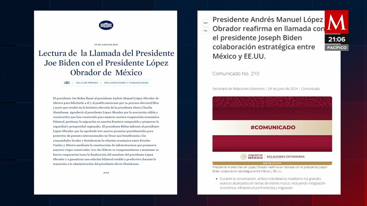 Joe Biden y Andrés Manuel López Obrador sostuvieron una conversación para discutir la nueva orden ejecutiva que afecta la frontera entre Estados Unidos y México, abordando sus implicaciones y buscando cooperación. -