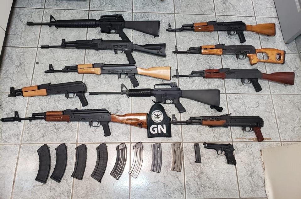 Elementos de la Guardia Nacional encontraron los 10 fusiles de asalto, un arma de fuego corta, nueve cargadores y eslabones para cinta de ametralladora ocultos en la cajuela del coche, en el cofre y debajo del asiento del copiloto.
