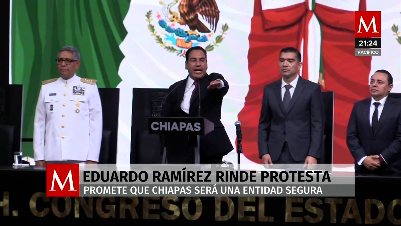 Eduardo Ramírez tomó protesta como gobernador de Chiapas y prometió trabajar por la paz. Inició su gestión con el banderazo de un operativo de seguridad. -