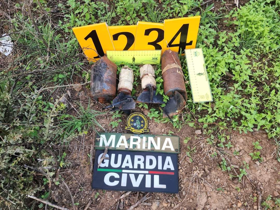 Marina y Guardia Civil localizan cinco granadas en Tumbiscatío, Michoacán