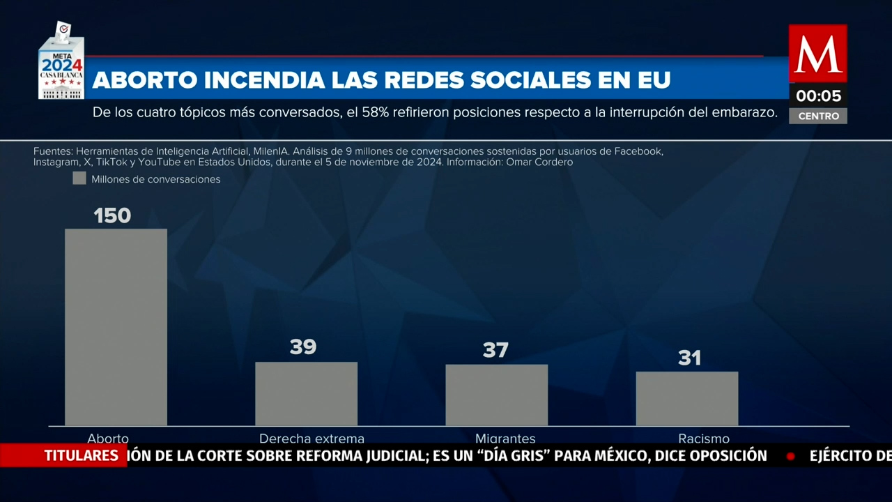 El tema del aborto se apoderó del 58% de las discusiones en redes sociales durante las elecciones, convirtiéndose en un tema clave en la campaña presidencial de Estados Unidos. -