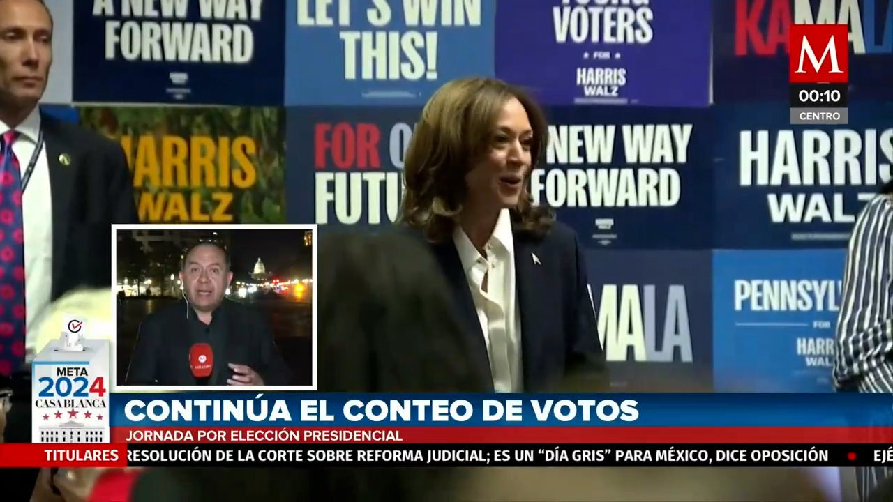 Imágenes de seguidores de Trump en Palm Beach muestran entusiasmo, mientras en Washington, el equipo de Kamala Harris mantiene un ambiente tranquilo y silencioso. -