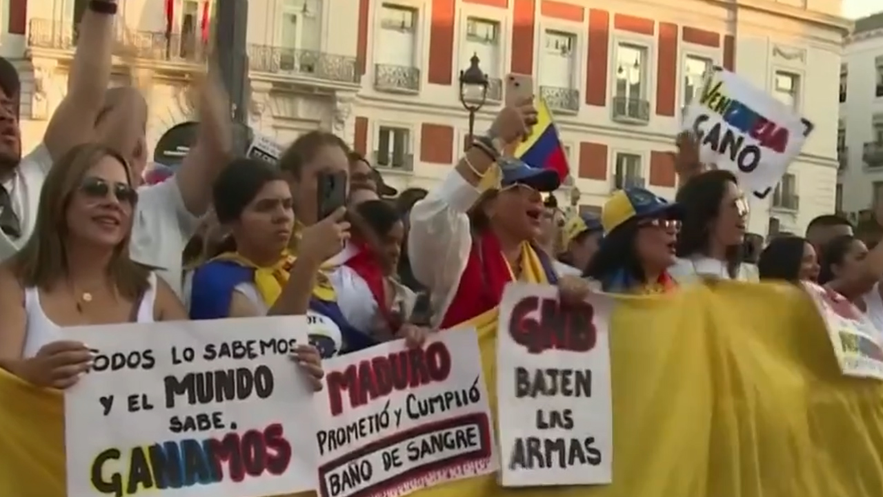 La oposición se congregó en la Puerta del Sol, denunciando fraude en las elecciones de julio. -