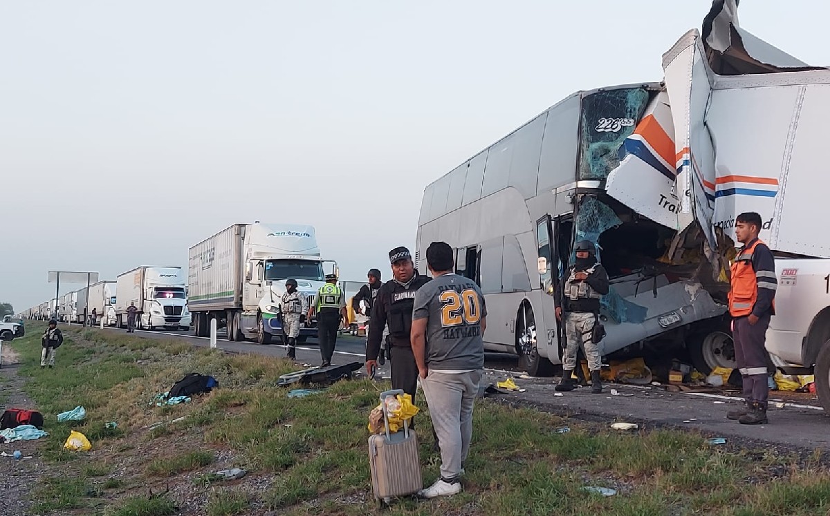 En San Luis Potosí, choca autobús con 57 migrantes a bordo en Matehuala