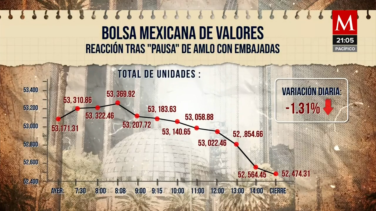 Los mercados financieros muestran volatilidad tras la decisión de AMLO de pausar las relaciones diplomáticas con Estados Unidos y Canadá, generando incertidumbre entre los inversores. -