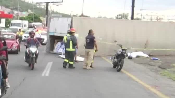 Un tractocamión con más de 20 toneladas de papel bond volcó en la México-Pachuca y cayó sobre una motocicleta donde viajaban un hombre y una mujer, la copiloto perdió la vida.