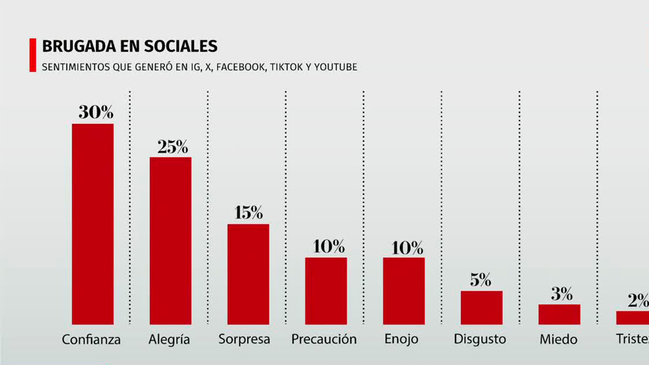 Clara Brugada emerge como la candidata que más sentimientos positivos genera en las redes sociales, según el análisis en tiempo real de MilenIA. Con un impresionante 55% de reacciones relacionadas con alegría y confianza, su mensaje resuena fuertemen -