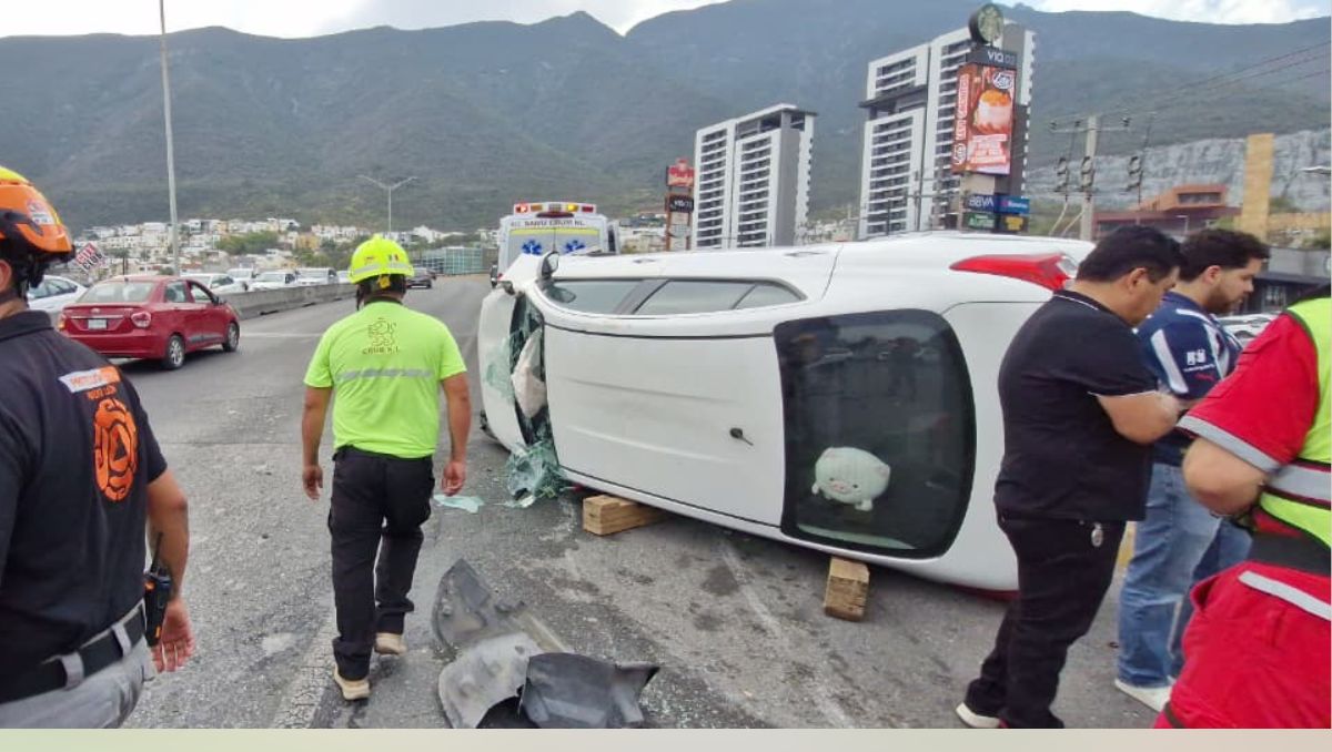 Joven conductora resulta lesionada tras sufrir volcadura en Monterrey