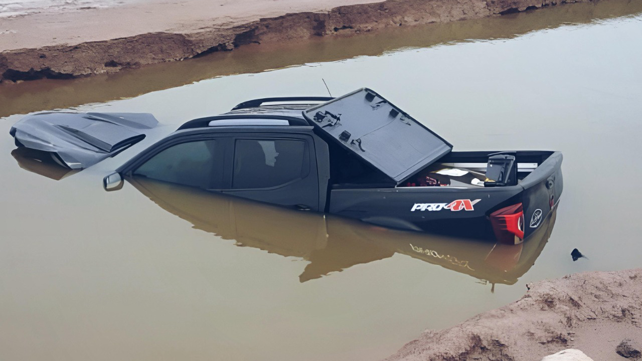 Camioneta sumergida, autos baleados y lodo hasta las ventanas: así terminó la persecución tras un choque armado en la costa de Sinaloa. -