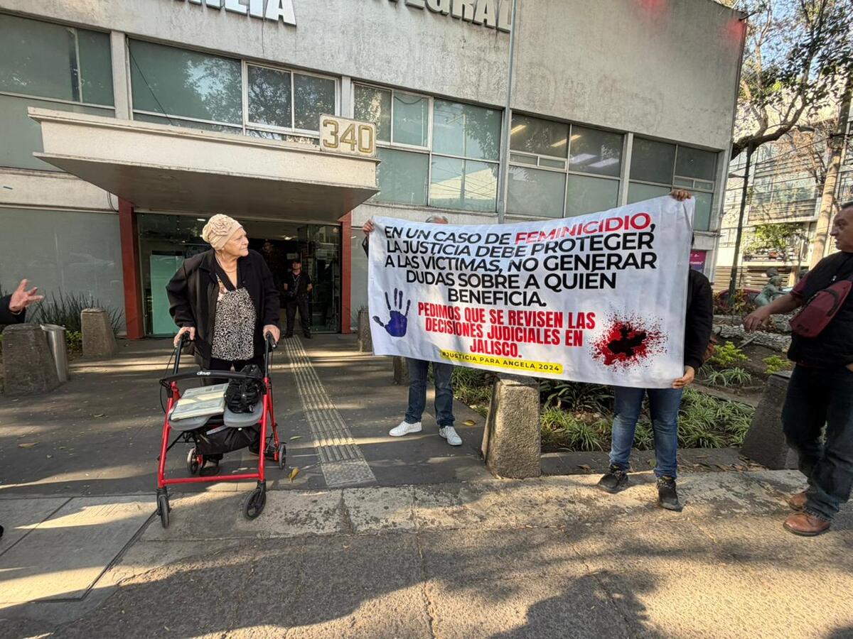 A casi dos años del feminicidio de Ángela Louise Birkenbach su madre viajó desde Vancouver a la Ciudad de México para protestar frente al DIF Nacional. -