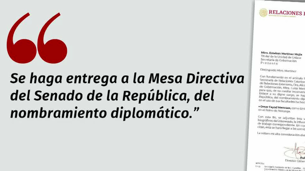 Propuesta de Omar Fayad como Embajador en Noruega: SRE solicita aprobación del Senado