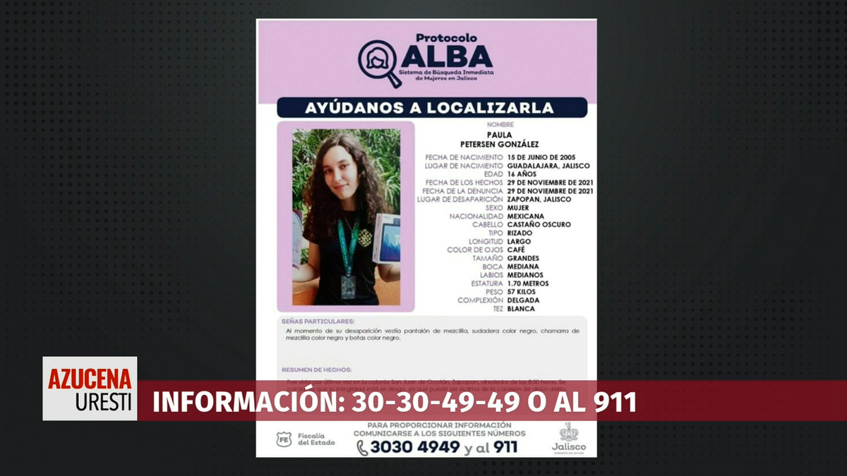 Se solicita colaboración para localizar a Paula Petersen Gonzáles