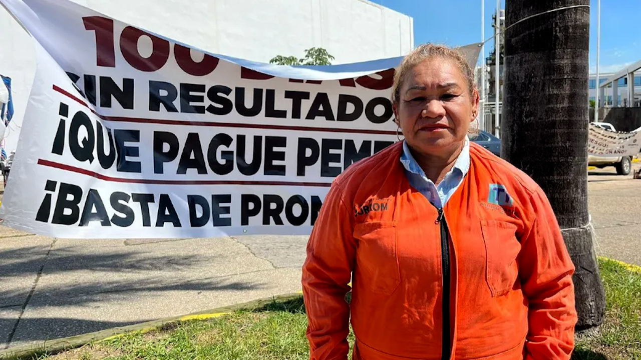 Esta semana se cumplieron 100 días del plantón de trabajadores en la entrada principal de la refinería, por adeudos desde 2023 por trabajos en Salina Cruz, Cadereyta, Tabasco y otros lugares. -