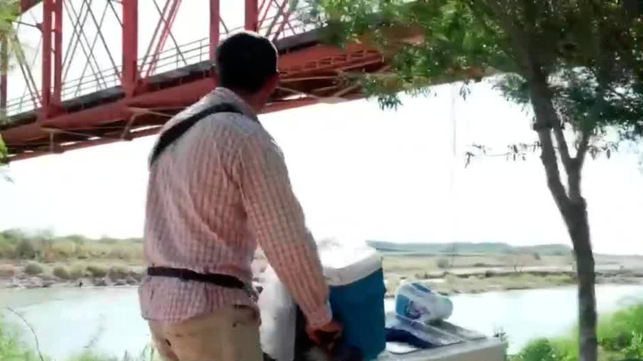 En Piedras Negras, Coahuila, un vendedor de paletas y nieve ha ideado una manera de vender sus productos cruzando el Río Bravo a los migrantes que esperan cruzar a Estados Unidos, llegando incluso a contar con la patrulla fronteriza como clientes. -