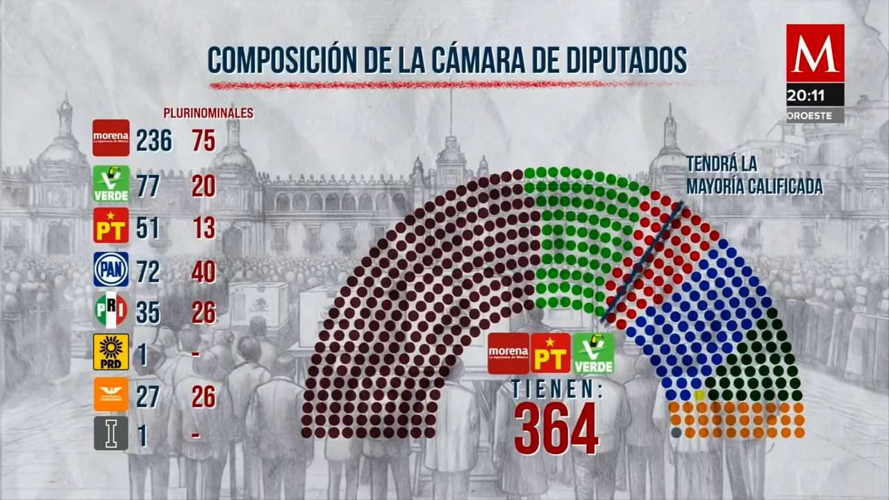 De ser aprobado, Morena sería el partido con más curules, con 75, mientras que el PT sería el de menor número, con 13. -