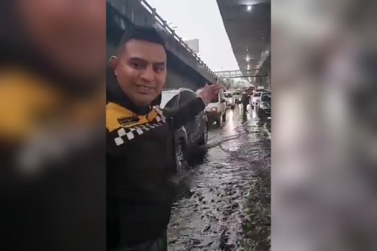 "Amo mi trabajo": policía de CdMx se vuelve viral por coordinar tránsito bajo la lluvia