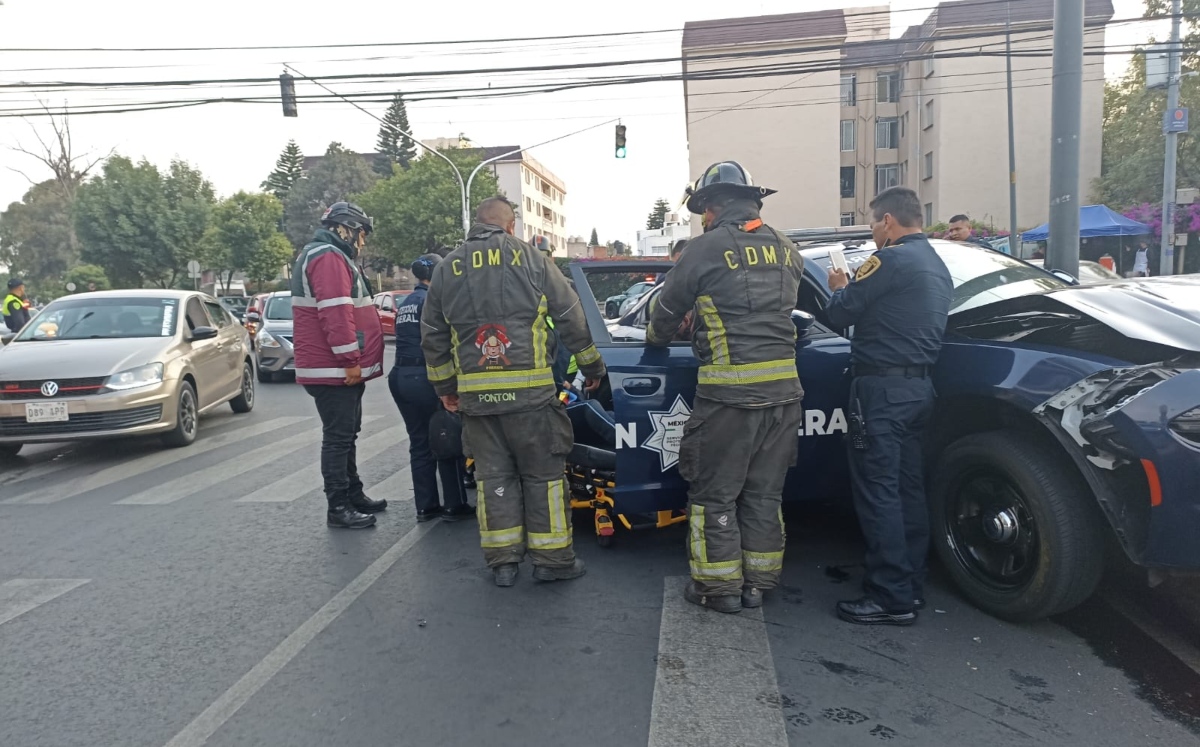Patrulla federal choca contra semáforo en Coyoacán; hay dos lesionados