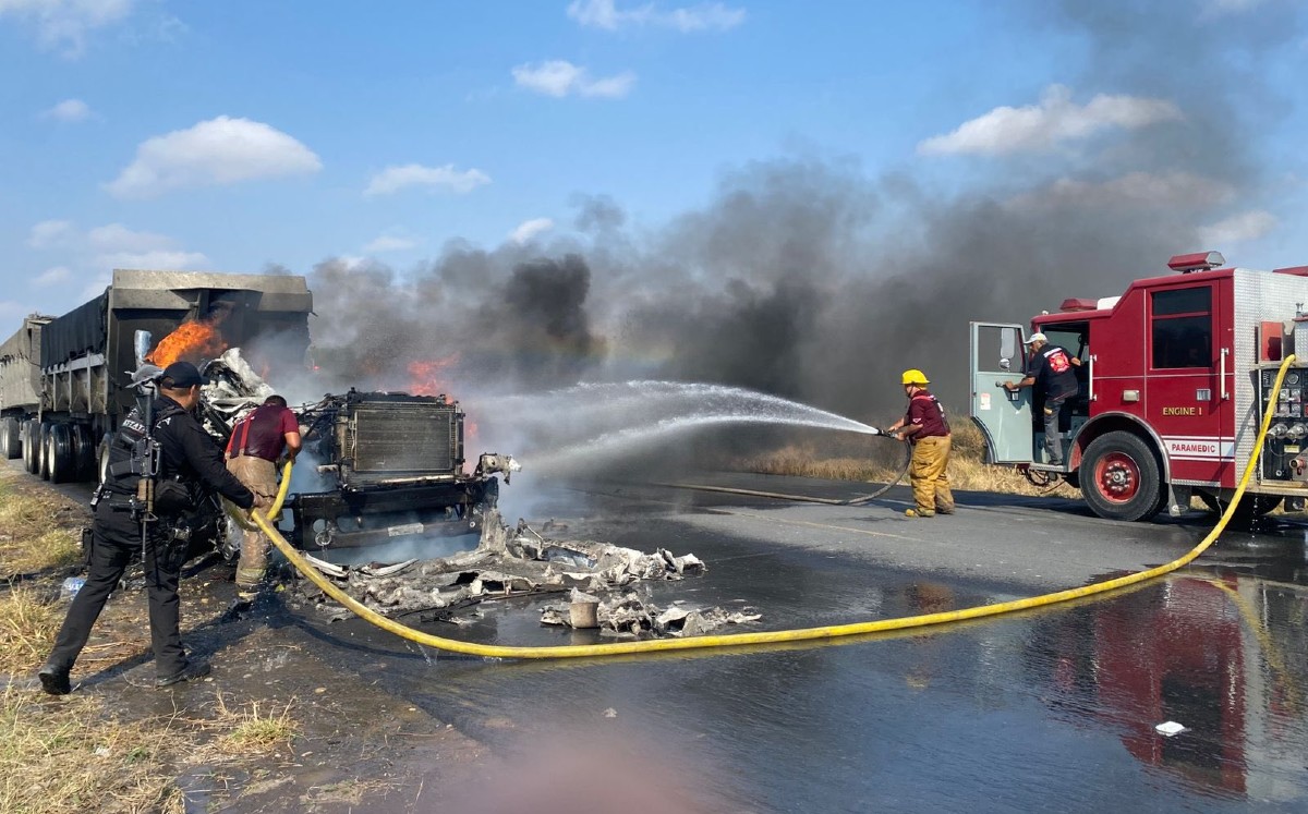 El tráiler resultó en pérdida total, desconociéndose al momento las causas de lo que derivó el incendio. -
