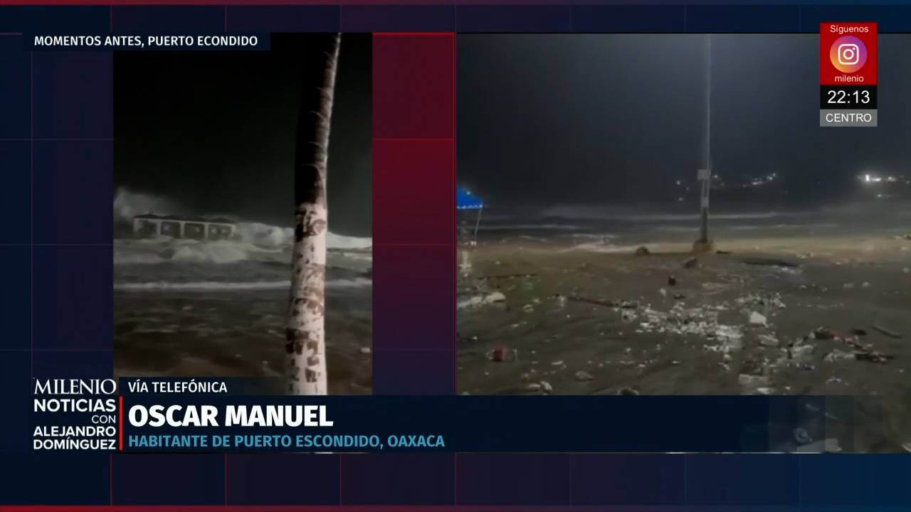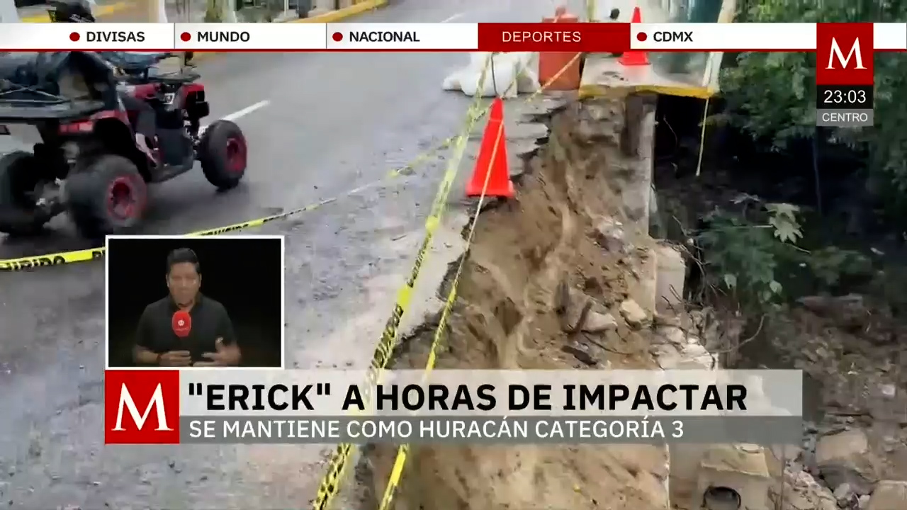El huracán 'Erick', ahora categoría 3, comienza a causar estragos en Puerto Escondido. Marejadas llegan a la bahía principal y se mantiene la alerta máxima en toda la zona costera por riesgo extremo. -