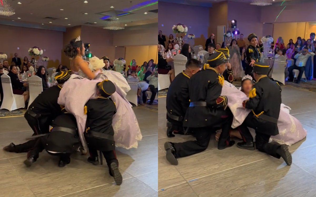 Chambelanes dejan caer a quinceañera en más de una ocasión durante vals; momento queda grabado