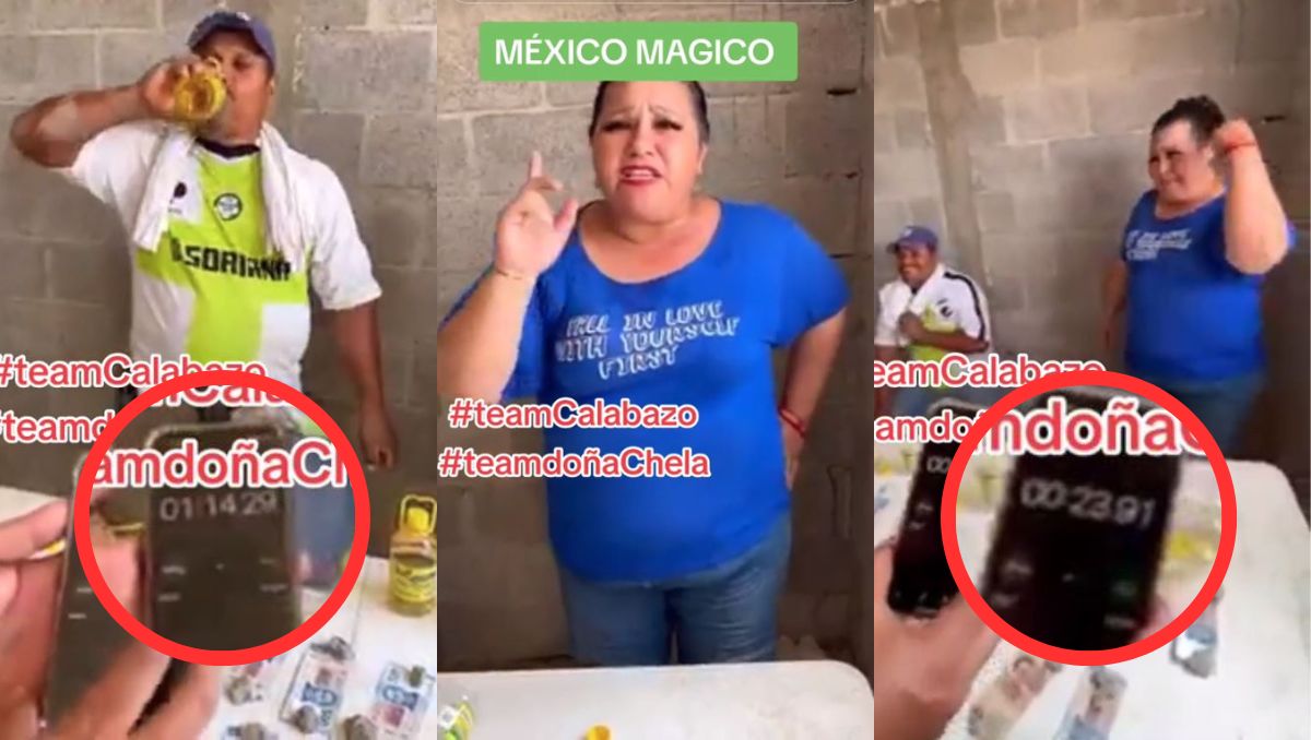 'Doña Chela' vence a albañil en reto de beber licor de caña | VIDEO