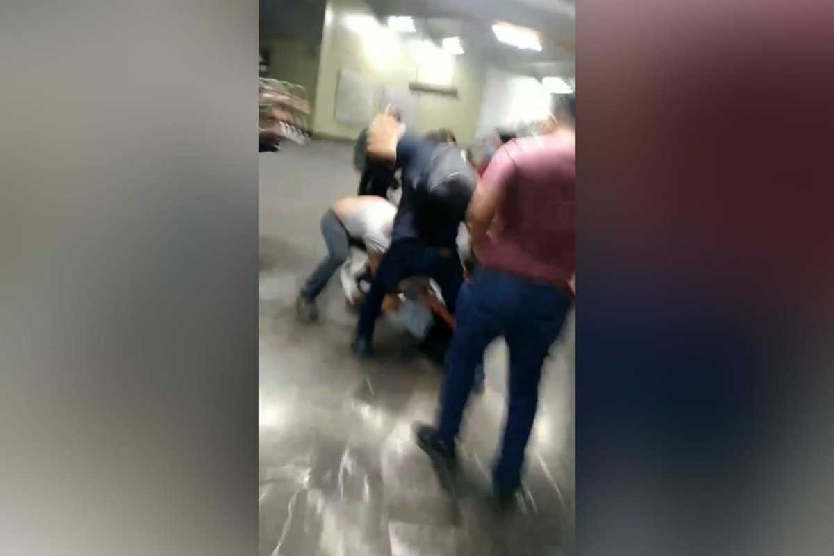 En el video se ve a dos hombres peleando mientras que otras personas intentan separarlos ante la falta de policías que intervengan. -
