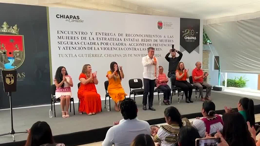 El gobernador de Chiapas, Rutilio Escandón Cadenas, lideró un encuentro con las Redes de Mujeres Seguras Cuadra por Cuadra, resaltando su papel en fortalecer el tejido social. -