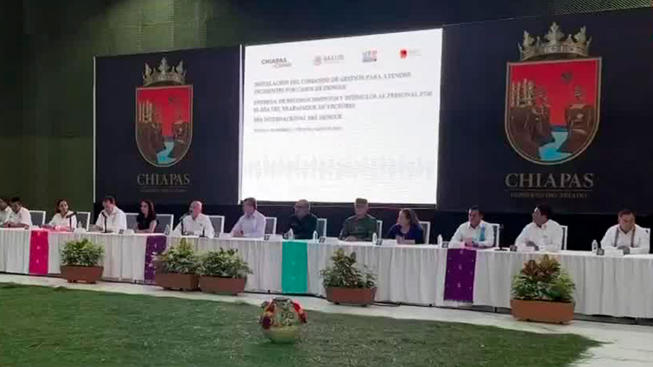 El gobernador de Chiapas, Rutilio Escandón, tomó juramento para garantizar un enfoque en el control del dengue, destacó la importancia del cuidado de la salud y solicitó reforzar las acciones de prevención y combate contra la enfermedad. -