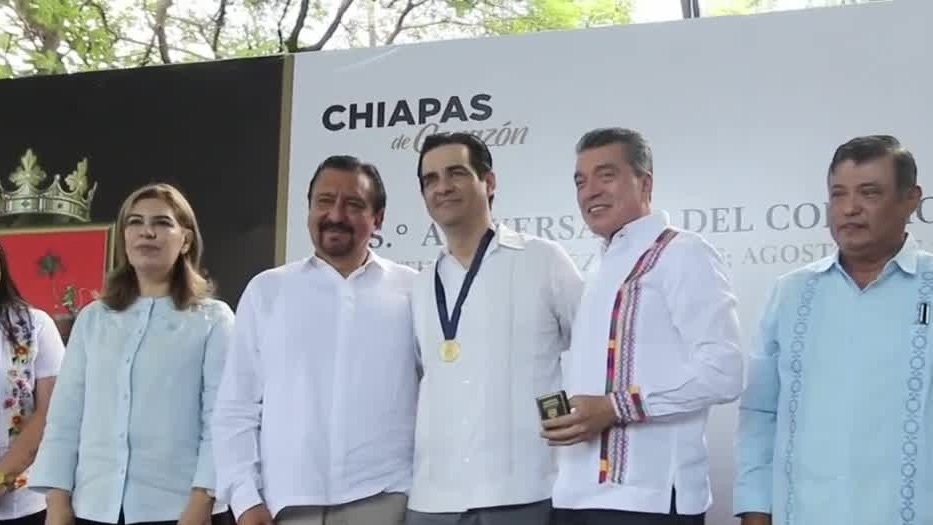 Rutilio Escandón impuso la Medalla 'Rosario Castellanos' al doctor Roberto Antonio Gómez, la máxima condecoración que entrega el Congreso de Chiapas a los hombres y mujeres que se destacan por su excelencia, en el área de la ciencia, arte y cultura. -